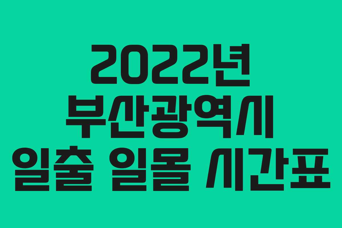 부산광역시의 2022년 일출과 일몰 시간을 월별로 정리하여 소개합니다. 이 정보는 부산에서의 아름다운 일출과 일몰을 감상하는 데 큰 도움이 될 것입니다.