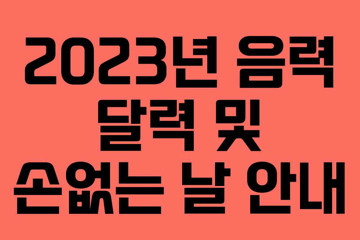 새해가 시작되면 가족과 친구들의 생일 및 중요한 일정을 달력에 표시하는 것이 중요합니다. 특히 음력으로 생일을 기념하는 경우에는 더욱 신경 써야 합니다. 이번 글에서는 2023년 음력 달력과 손없는 날을 정리해보겠습니다.