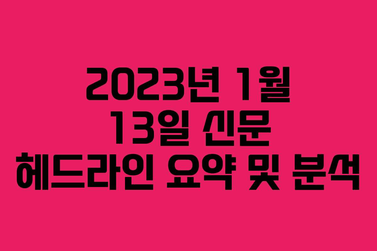 2023년 1월 13일 신문 헤드라인 요약 및 분석