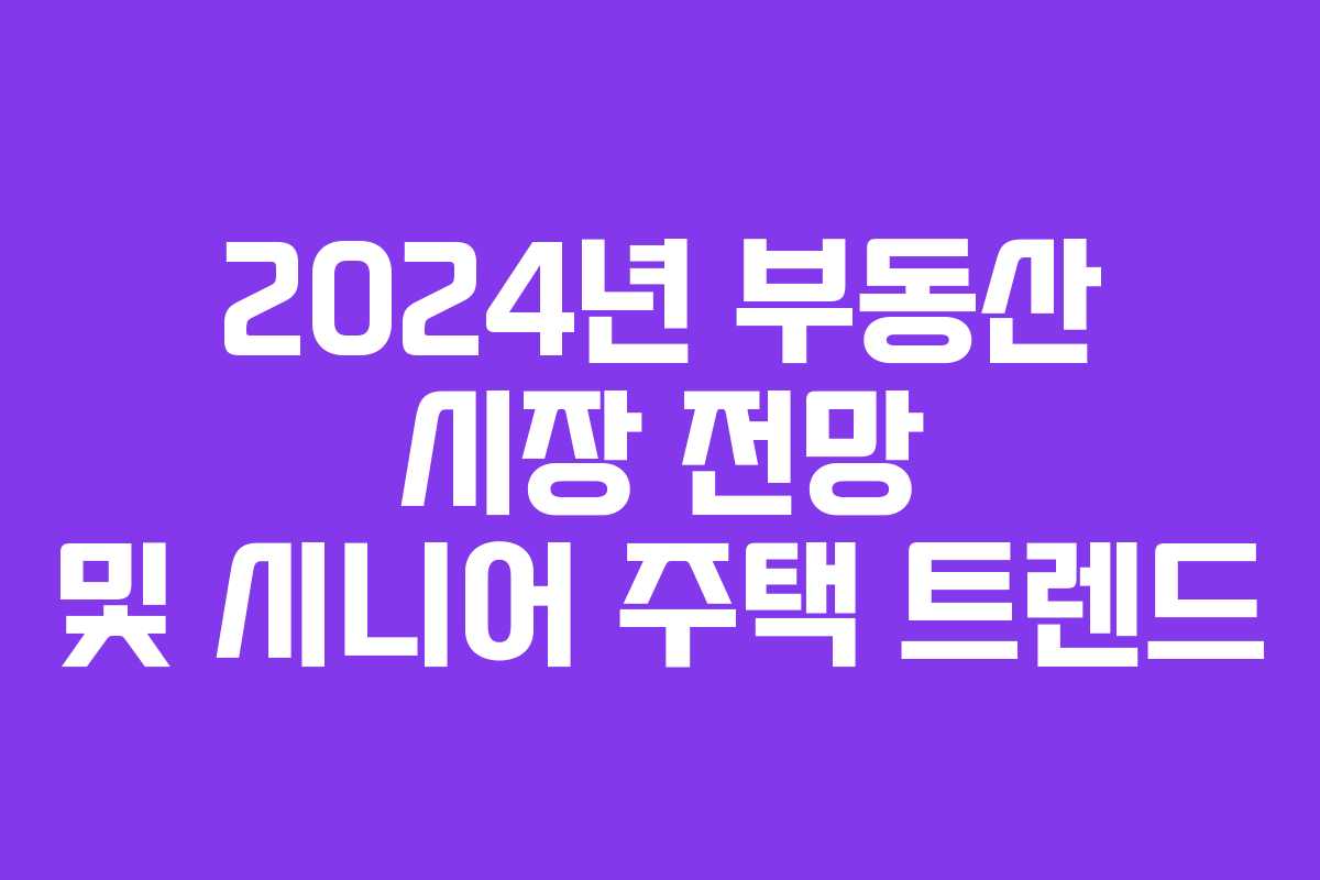 2024년 부동산 시장 전망 및 시니어 주택 트렌드