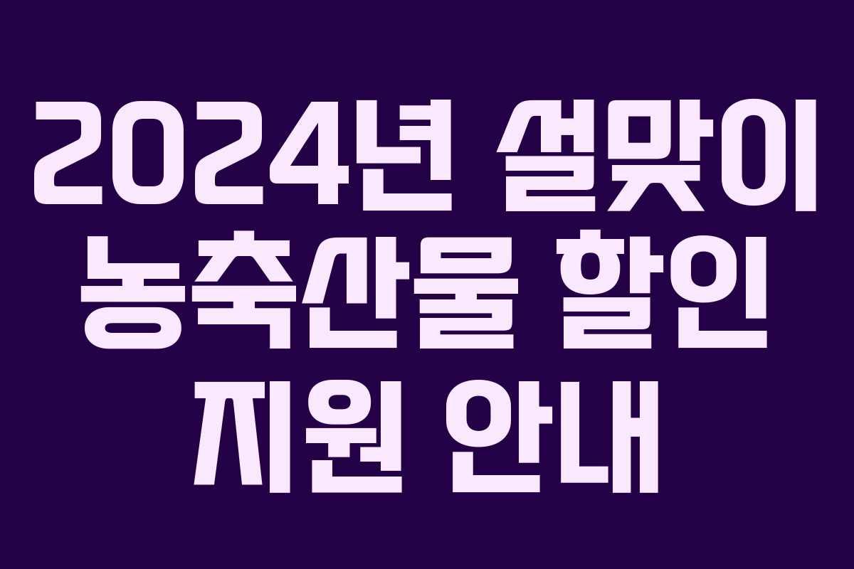 2024년 설을 맞아 농림축산식품부에서 진행하는 농축산물 할인 지원 행사에 대한 정보를 소개합니다. 이번 행사는 명절 장바구니 부담을 덜어주는 좋은 기회가 될 것입니다.