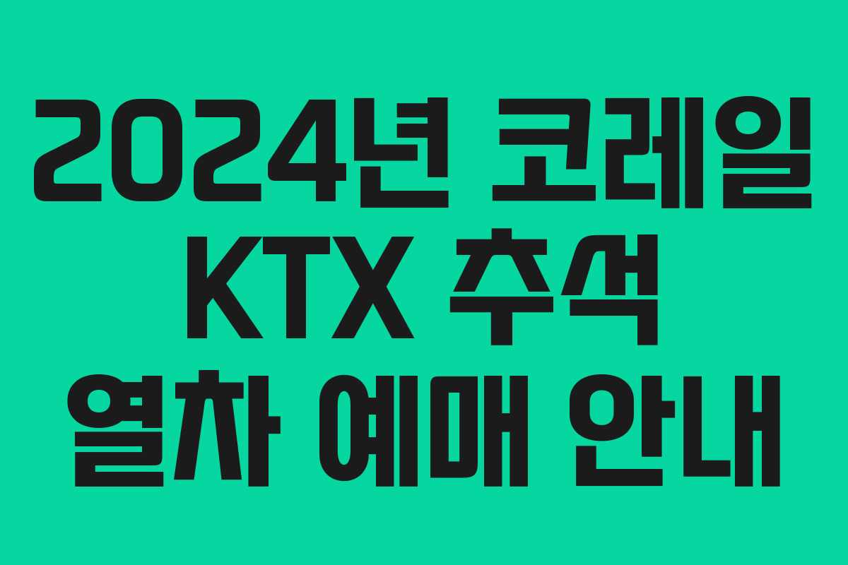 2024년 추석을 맞아 코레일에서 KTX 열차의 예매가 진행됩니다. 원활한 여행을 위해 예매 일정과 방법을 미리 숙지하는 것이 중요합니다.