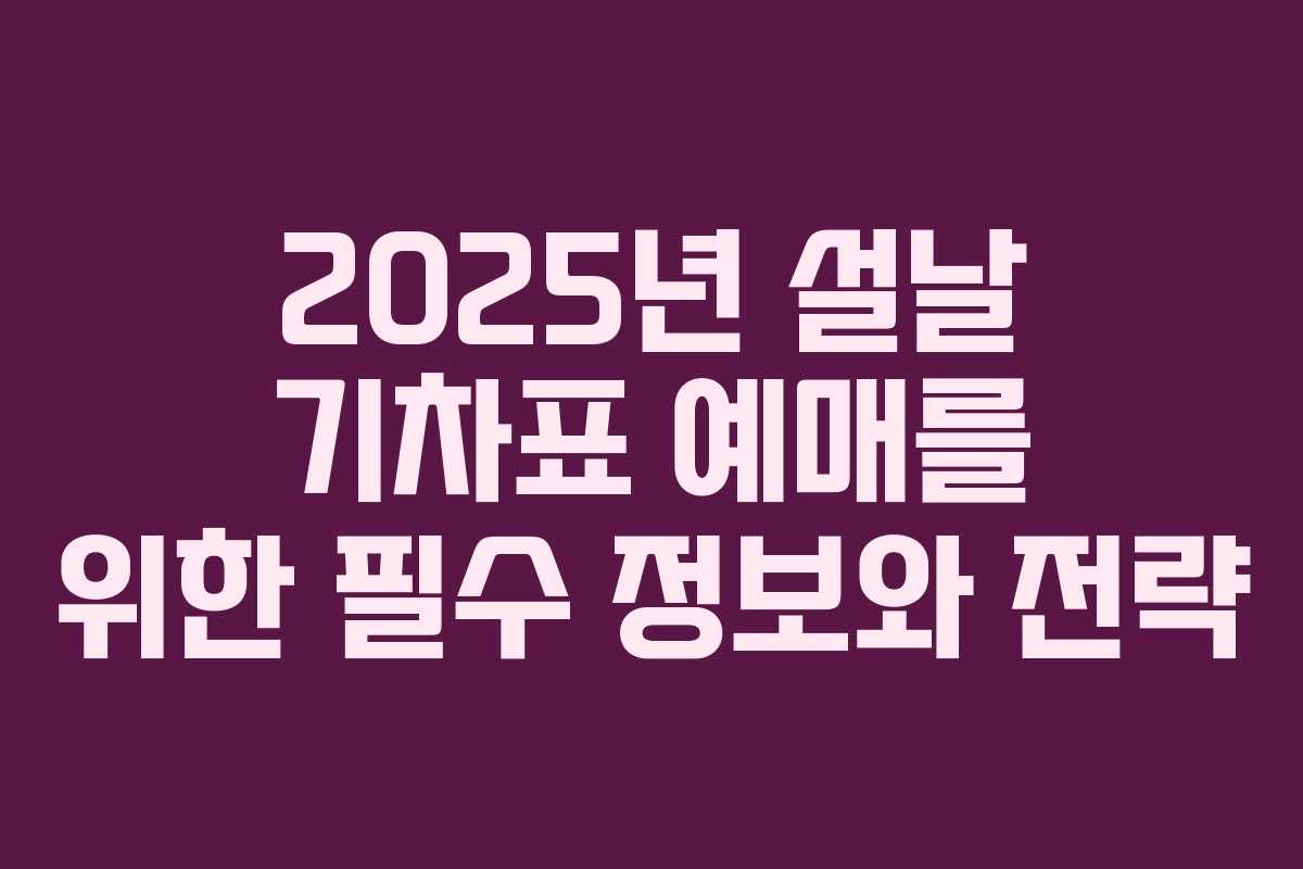 2025년 설날 기차표 예매를 위해서는 사전 준비가 필수적입니다. 예매 일정과 전략을 미리 숙지하고 필요한 사항들을 점검하여 귀성길을 계획해 보시기 바랍니다.