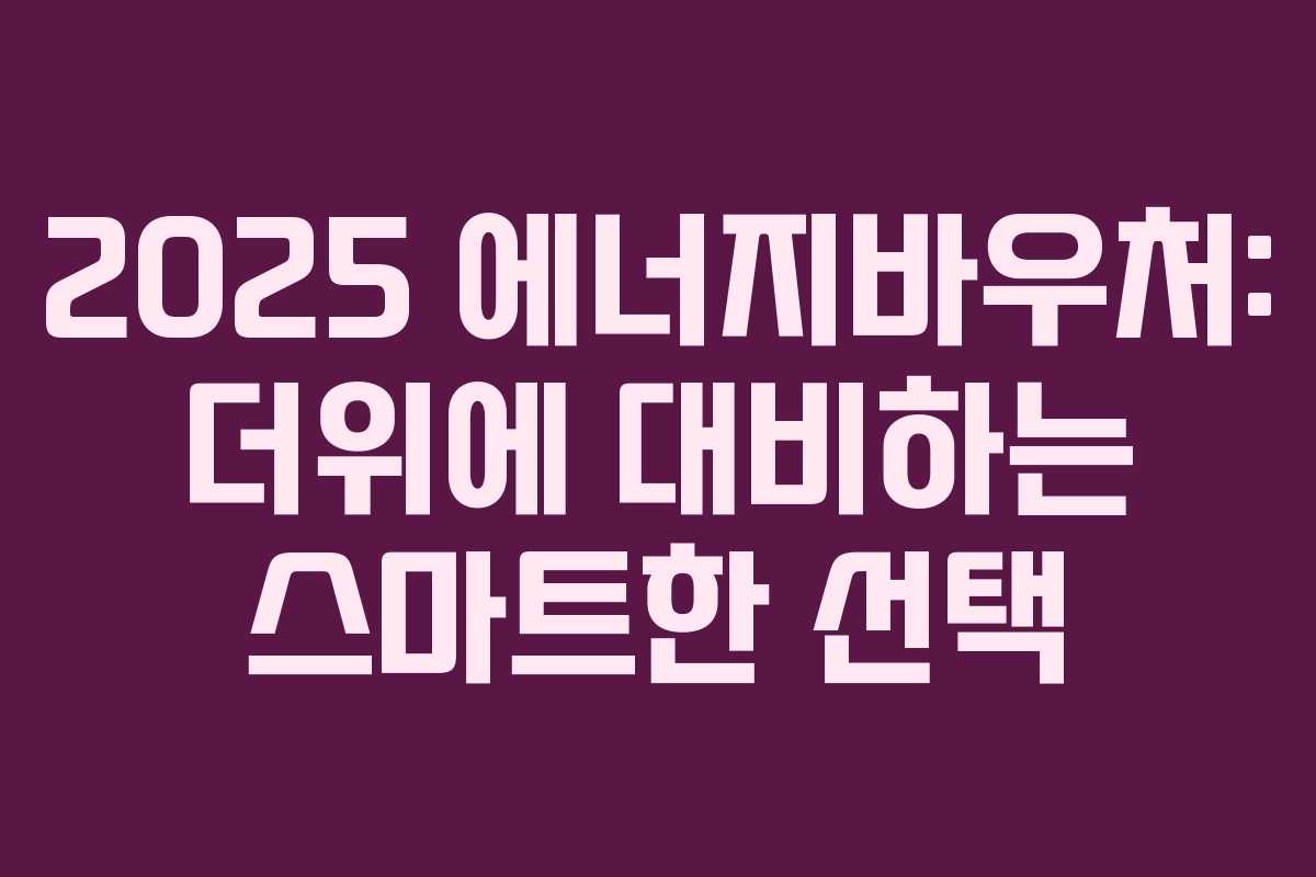 2025 에너지바우처: 더위에 대비하는 스마트한 선택