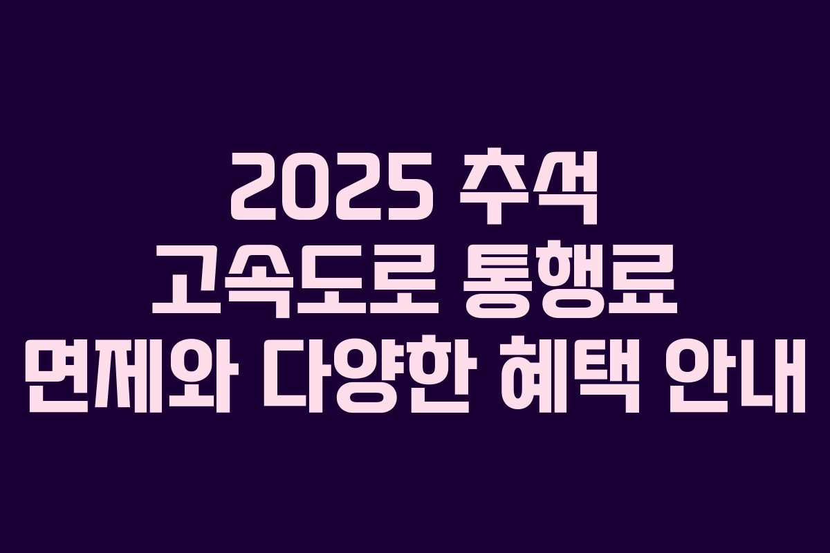 2025년 추석을 맞아 정부는 민생안정 대책을 발표했습니다. 이 중 가장 주목할 만한 소식은 전국 고속도로 통행료가 4일간 면제된다는 점입니다. 또한 KTX·SRT 할인, 문화시설 무료 개방 등 다양한 혜택이 제공되어 알뜰한 명절을 보낼 수 있는 기회가 마련되었습니다.