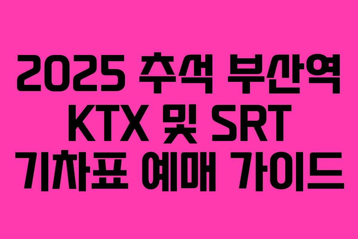 2025년 추석 연휴 동안 부산역에서의 KTX 및 SRT 기차표 예매 방법에 대해 알아보겠습니다. 이 시기는 귀성 및 귀경 수요가 많아 예매 경쟁이 치열하므로, 효율적인 준비가 필요합니다.