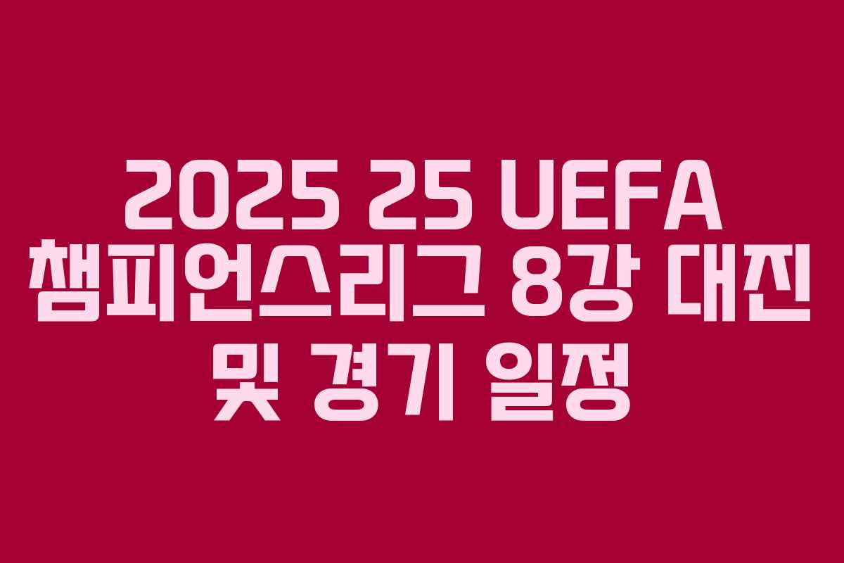 2025-25 UEFA 챔피언스리그 8강 대진이 발표되어 축구 팬들의 기대를 모으고 있습니다. 세계적인 클럽들이 최고의 자리를 두고 치열한 경쟁을 벌일 예정입니다.