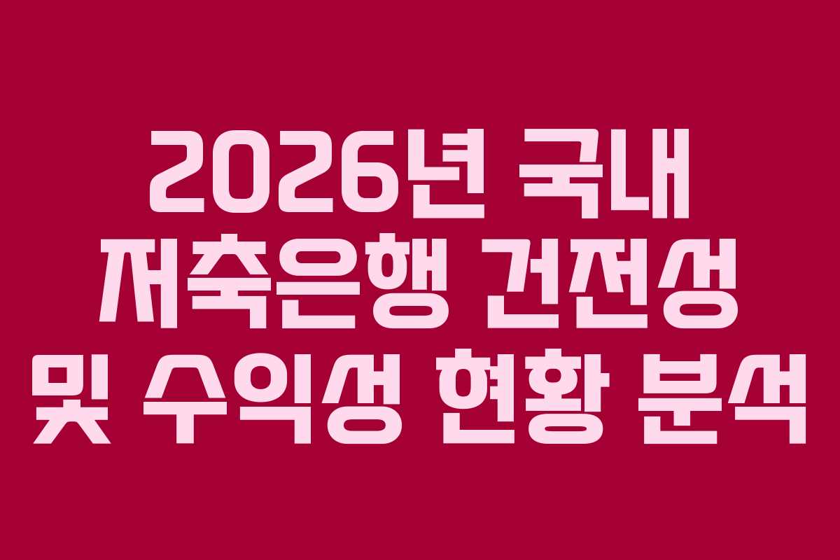 2026년 국내 저축은행 건전성 및 수익성 현황 분석