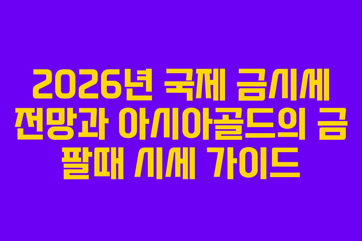 2026년 현재 국제 금시세는 다수의 경제적 요인에 의해 영향을 받고 있으며, 아시아골드의 금 팔때 시세는 이러한 변동을 반영하고 있습니다. 금 거래 시에는 순도와 중량, 판매 시세 및 거래소의 신뢰성을 고려해야 하며, 각종 체크리스트를 활용하여 체계적으로 진행하는 것이 바람직합니다. 금은 실물 자산으로서 가치가 있기 때문에, 신중하게 접근하는 것이 필요합니다. 아시아골드에서는 고객을 위해 다양한 상담 서비스를 제공하고 있으니, 필요한 경우 언제든지 문의하시기 바랍니다.
