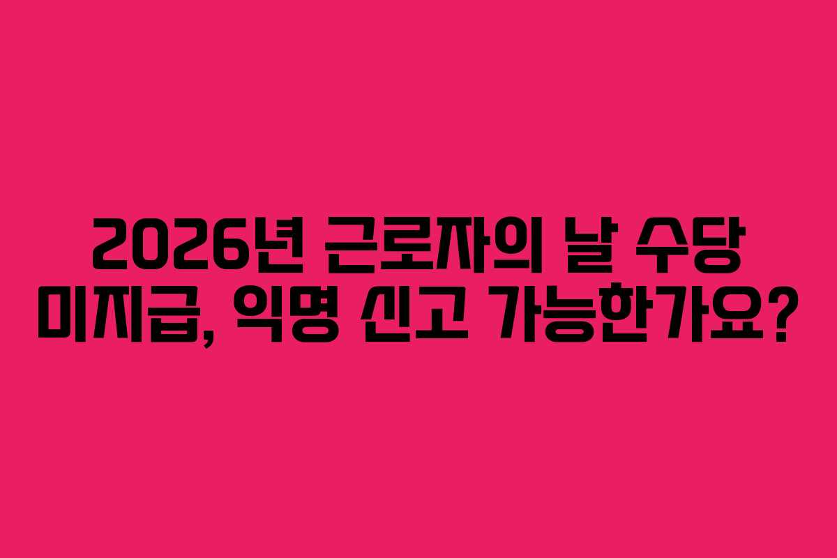 2026년 근로자의 날 수당 미지급 문제는 결코 간과할 수 없는 사안입니다. 익명 신고를 통해 자신의 권리를 보호할 수 있는 방법을 이해하고, 체계적인 대처 방안을 마련하는 것이 중요합니다. 민수의 경험을 통해 많은 이들이 자신의 권리를 지킬 수 있는 힘을 얻기를 바랍니다.