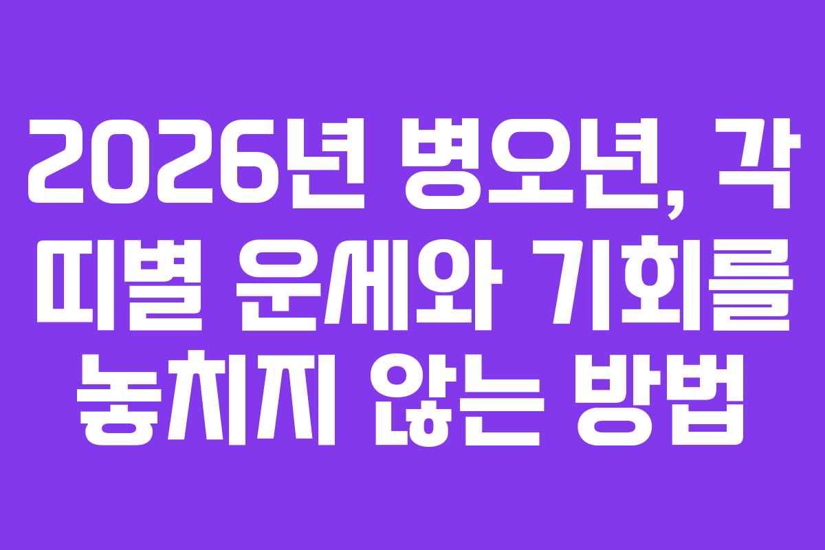 2026년은 ‘붉은 말의 해’로 알려진 병오년으로, 불의 에너지가 넘치는 해가 될 것입니다. 이 시기는 각 띠별로 다양한 기회와 도전이 있을 것으로 전망되며, 특히 호랑이띠, 개띠, 용띠는 큰 행운이 따를 것으로 기대됩니다. 반면, 토끼띠, 양띠, 돼지띠는 눌삼재를 맞아 조심해야 할 시점입니다. 각 띠별 운세를 살펴보면, 어떤 준비가 필요한지 알 수 있습니다.
