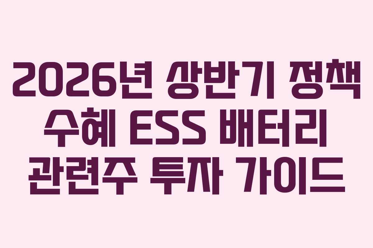2026년 상반기 정책 수혜 ESS 배터리 관련주 투자 가이드