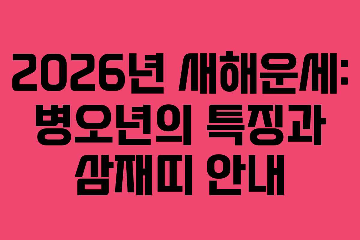2026년은 병오년, 즉 ‘붉은 말의 해’로 불리며, 강한 불기운이 특징인 역동적인 해입니다. 이 해는 감정의 기복이 크고 사회적 갈등이 나타날 가능성이 있으며, 신중한 판단이 요구됩니다. 이번 글에서는 2026년의 신년운세를 무료로 확인할 수 있는 사이트와 각 띠별 특징, 삼재띠에 대한 정보도 함께 소개하겠습니다.