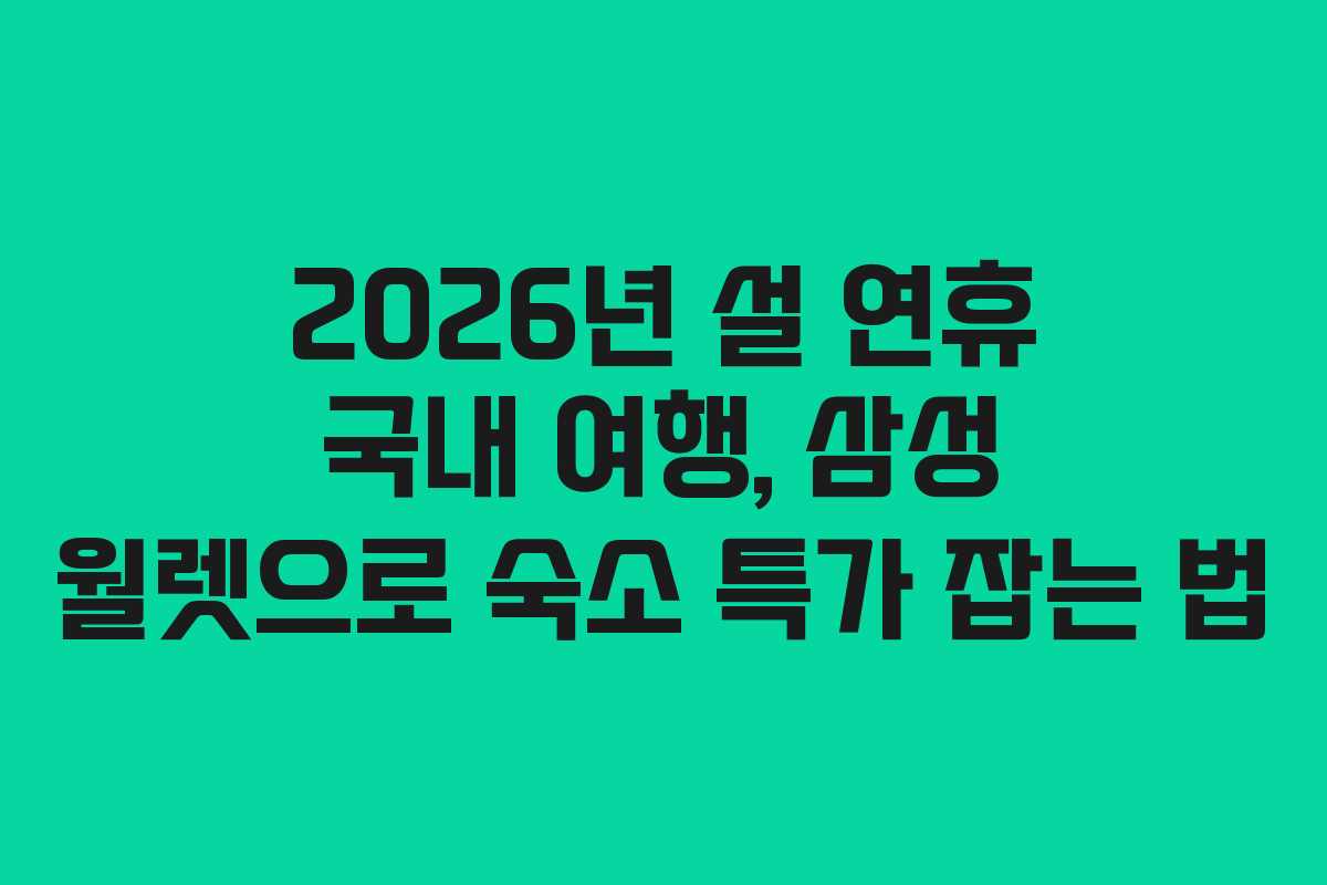 2026년 설 연휴가 다가오고 있습니다. 많은 이들이 가족과 함께 시간을 보내고 특별한 추억을 만들기 위해 여행 계획을 세우고 있을 것입니다. 저 역시 매년 설 연휴가 되면 여행을 떠나는 것을 즐기는데, 특히 이번에는 삼성 월렛을 활용하여 숙소를 특가로 예약할 수 있는 방법에 대해 이야기해보려 합니다. 스마트폰 하나로 간편하게 숙소를 예약하고, 대중교통을 이용해 편리하게 이동하는 경험을 여러분과 공유하고 싶습니다.