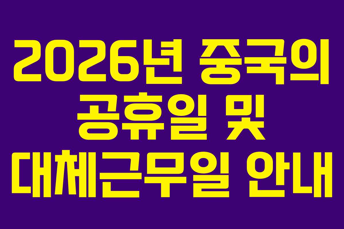 2026년 중국의 주요 공휴일 및 대체근무일 현황
