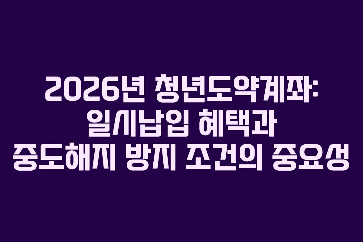 청년도약계좌는 청년들이 자산을 형성할 수 있도록 돕는 금융상품으로, 특히 일시납입이라는 혜택이 주목받고 있습니다. 2026년을 기준으로, 이 제도의 이해와 중도해지에 대한 안전장치가 중요해지고 있습니다. 청년도약계좌에 대한 핵심적인 내용을 살펴보며, 혜택을 극대화할 수 있는 방법을 알아보겠습니다.