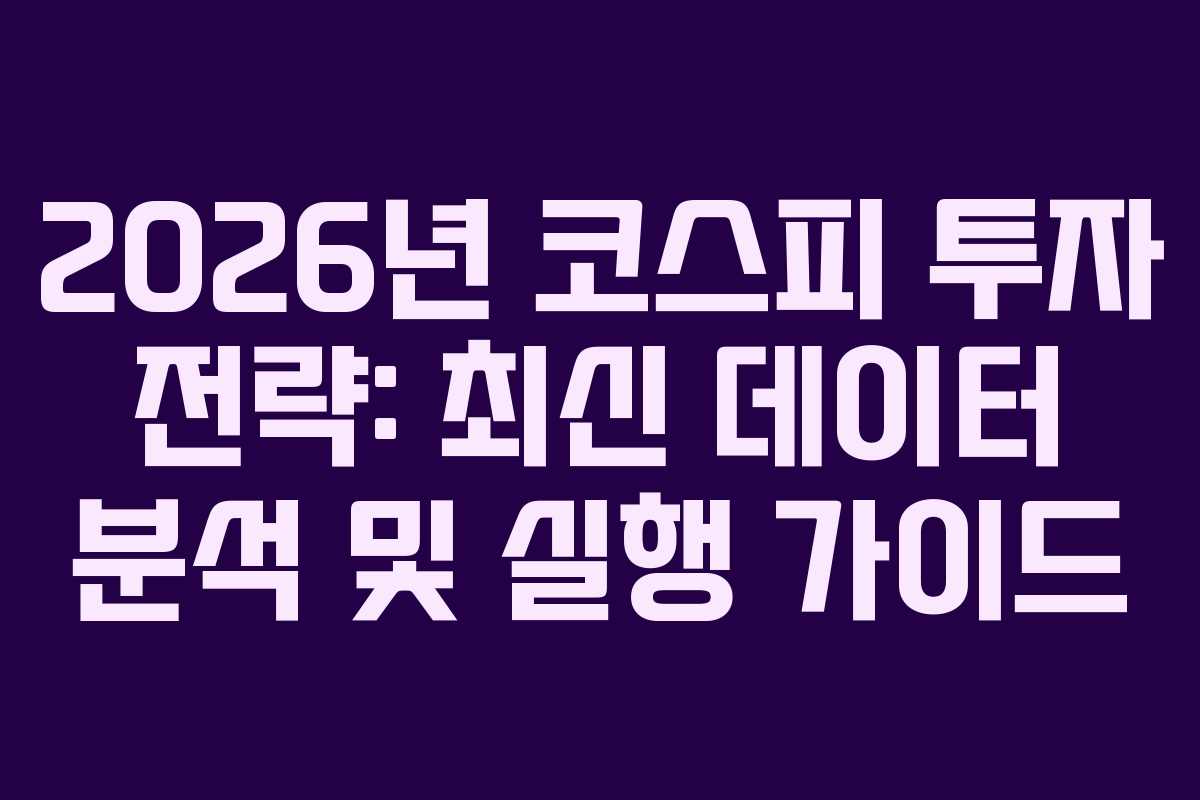 - 2026년 코스피 투자 마무리: 지속 가능한 투자 전략