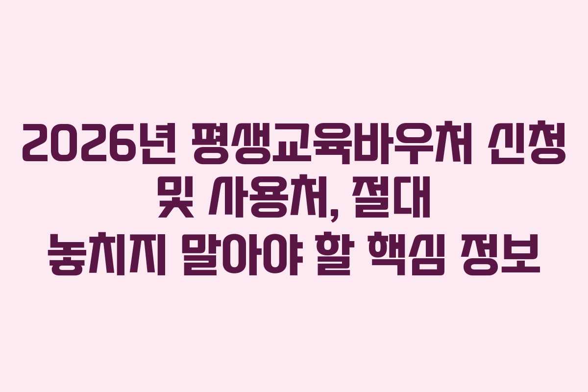 2026년 평생교육바우처의 신청기간과 사용처에 대한 중요한 정보를 안내합니다. 이 글에서는 평생교육바우처를 신청하기 위해 알아야 할 필수 사항과 함께 실질적인 활용 팁을 공유합니다. 여러분의 학습 계획에 도움이 되기 바랍니다.