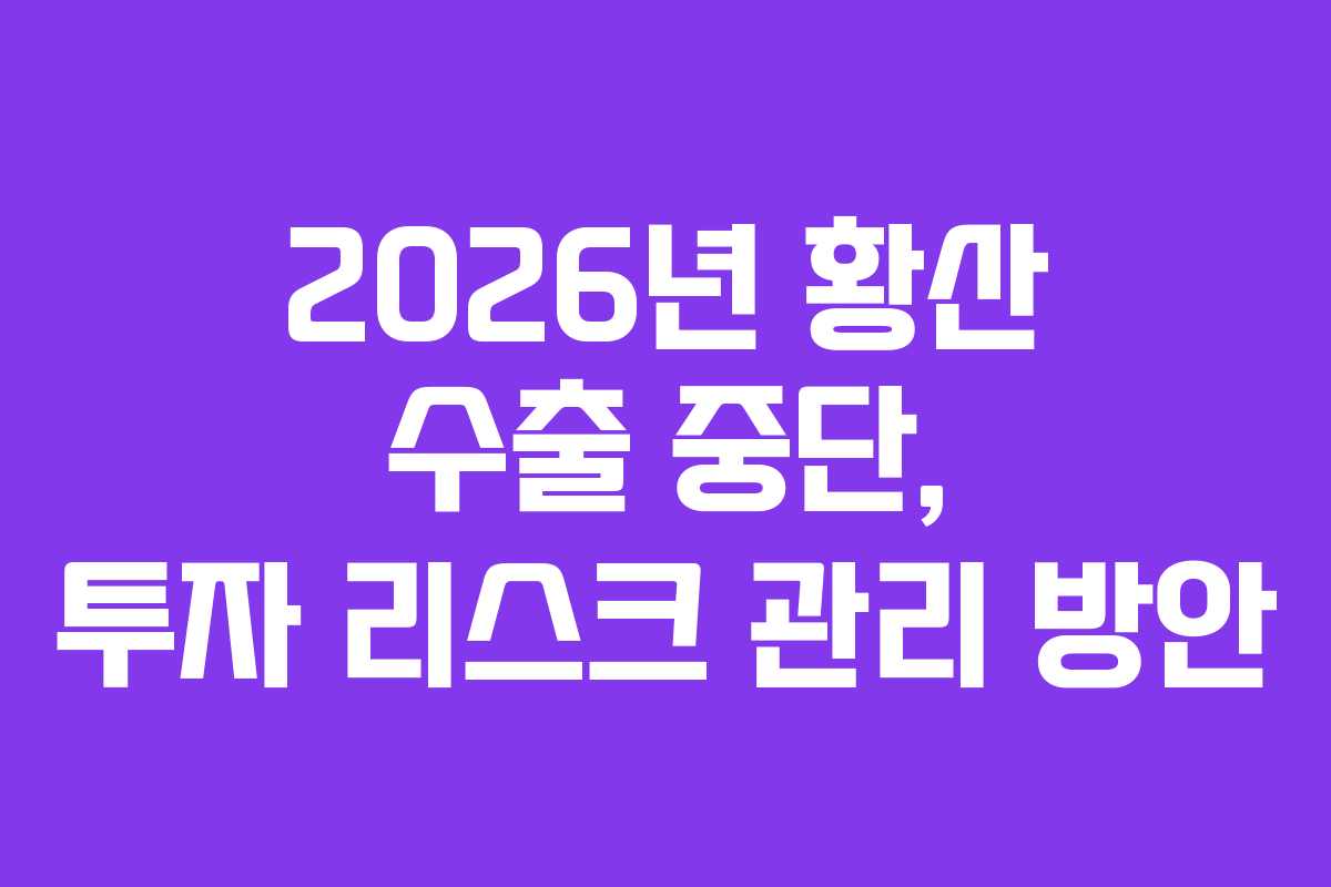 2026년은 전 세계적으로 많은 이슈와 변수가 얽힌 해입니다. 특히 중국의 황산 수출 중단은 많은 산업에 큰 파장을 가져왔고, 이를 통해 우리는 투자 리스크 관리의 중요성을 다시금 깨닫게 되었습니다. 한때 나는 이 문제에 대해 깊이 고민해본 적이 있습니다. 황산은 비료, 정유, 반도체 공정 등 다양한 산업에서 필수적인 소재로, 그 수출이 중단되면 어떤 결과를 초래할지에 대한 불안감이 커졌던 것이죠. 오늘은 내가 경험한 투자 리스크 관리 방안과 함께, 2026년 황산 수출 중단에 따른 영향과 이에 대한 대응 전략을 공유하고자 합니다.