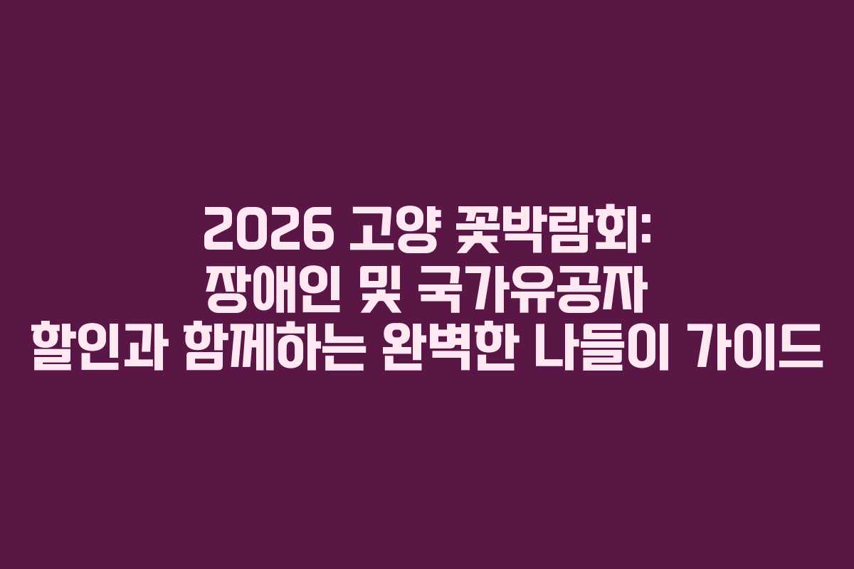 2026 고양 꽃박람회에서는 장애인 및 국가유공자를 위한 할인 혜택도 제공됩니다. 장애인과 국가유공자는 입장 시 특별 할인을 받을 수 있으니, 해당 사항을 미리 확인하고 필요한 서류를 준비해 가는 것이 좋습니다. 할인혜택을 통해 보다 저렴하게 행사에 참여할 수 있는 기회를 잡아보세요.