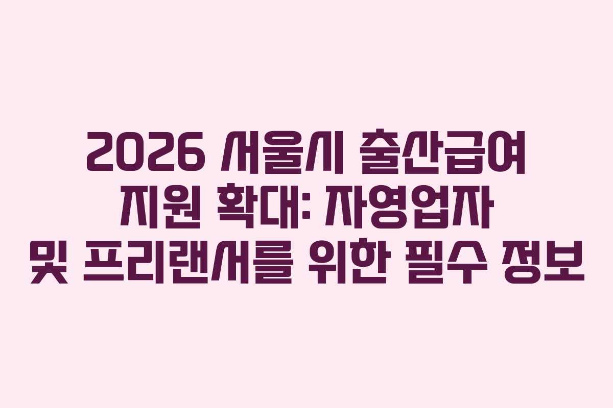 2026년 기준으로 서울시는 출산급여 지원을 확대하여 다음과 같은 조건을 충족하는 가구에 혜택을 제공합니다.