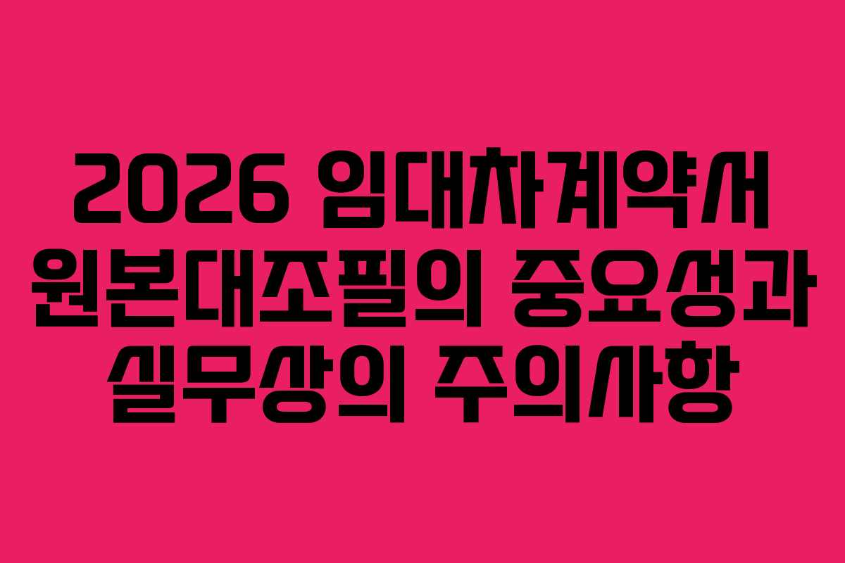 2026년 현재, 임대차계약서 원본대조필은 단순한 행정 절차가 아니라, 재정적 안정성을 확보하기 위한 필수 요소로 자리잡고 있다. 이 글에서는 원본대조필의 개념과, 이를 통해 발생할 수 있는 다양한 상황에 대한 실무 포인트를 살펴보겠다. 특히 계약 후 예상치 못한 요청으로 혼란을 겪는 사례를 중심으로 이야기를 풀어가겠다.
