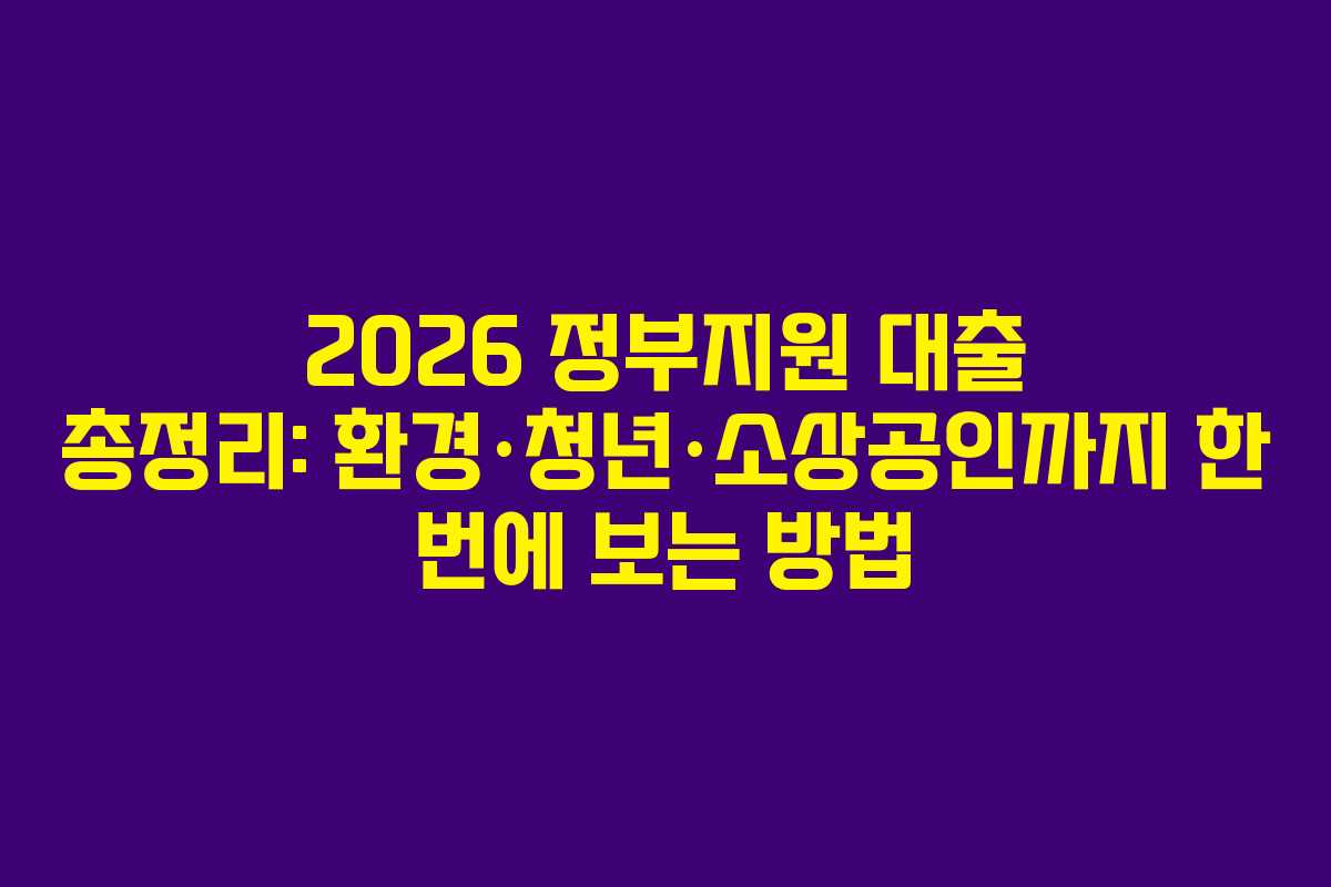 2026년 정부지원 대출은 환경, 주거, 소상공인 등 다양한 분야에서 제공되는 금융 지원 프로그램입니다. 각 분야에 따라 서로 다른 조건과 지원 방식이 있으므로, 자신의 상황에 맞는 정보를 파악하는 것이 중요합니다.