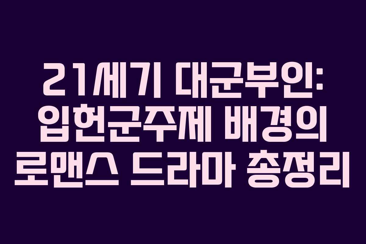 2026년 상반기 방영 예정인 드라마 ‘21세기 대군부인’은 현대 대한민국의 입헌군주제라는 독특한 설정을 바탕으로 한 로맨스 드라마입니다. 이 작품은 평민 신분의 재벌가 여성과 왕족인 남성 간의 만남을 통해 신분의 벽을 허물고 각자의 삶을 개척하는 과정을 그립니다. 주인공 성희주(아이유 분)는 재벌 2세로서 뛰어난 능력을 지니고 있지만, 평민이라는 한계로 인해 고뇌를 겪습니다. 반면, 이안대군 이완(변우석 분)은 고귀한 혈통을 지니고 있으나 실질적인 권한이 없는 왕족으로서 공허함을 느끼고 있습니다. 이들의 계약 결혼은 단순한 로맨스를 넘어 서로의 삶에 긍정적인 영향을 주며 진행될 것입니다.