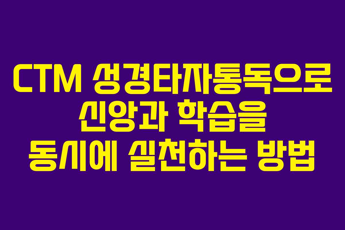 CTM 성경타자통독은 성경을 읽으면서 타자 연습을 동시에 할 수 있는 혁신적인 프로그램입니다. 이 도구를 통해 신앙을 심화하고 학습 능력을 향상시킬 수 있습니다. 본 글에서는 CTM 성경타자통독의 기능, 설치 방법, 그리고 추가 기능에 대해 자세히 살펴보겠습니다.
