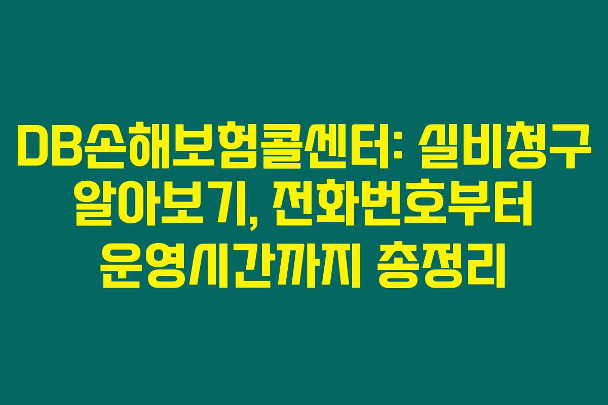 DB손해보험콜센터: 실비청구 알아보기, 전화번호부터 운영시간까지 총정리