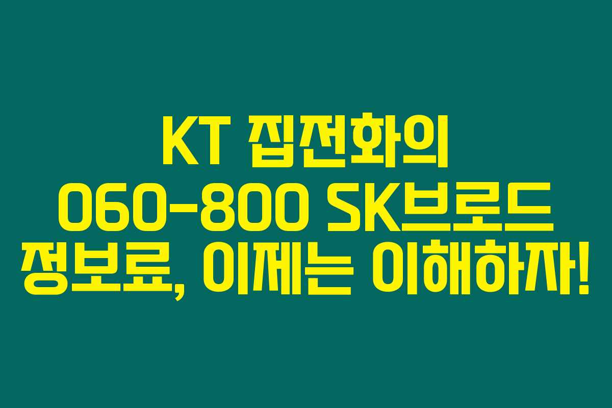 전화 요금이 복잡하게 느껴지시죠? 특히 ‘060-800 SK브로드 정보료’와 같은 용어는 처음 접하는 분들에게는 더욱 어렵게 느껴질 수 있어요. 아래를 읽어보시면, KT 집전화와 관련된 060-800 정보료에 대한 모든 궁금증을 해소할 수 있을 거랍니다.