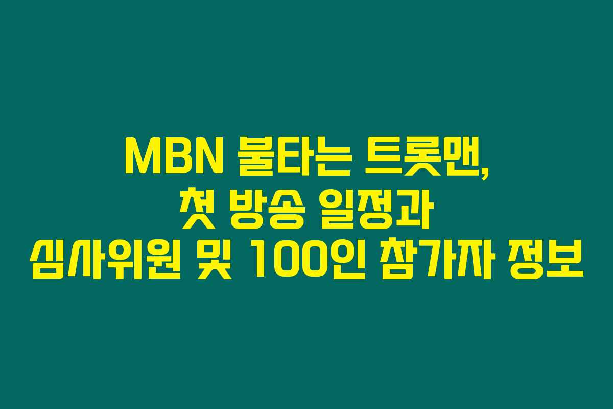 MBN의 ‘불타는 트롯맨’이 드디어 첫 방송을 앞두고 있어요. ‘미스 트롯’과 ‘미스터 트롯’과 같은 인기 프로그램을 만든 서혜진 PD의 신작이라 기대가 크죠. 여러분도 방송 일정과 심사위원, 참가자에 대한 정보를 꼭 확인해보세요. 트로트의 새로운 재미와 감동을 느낄 수 있을 거예요.