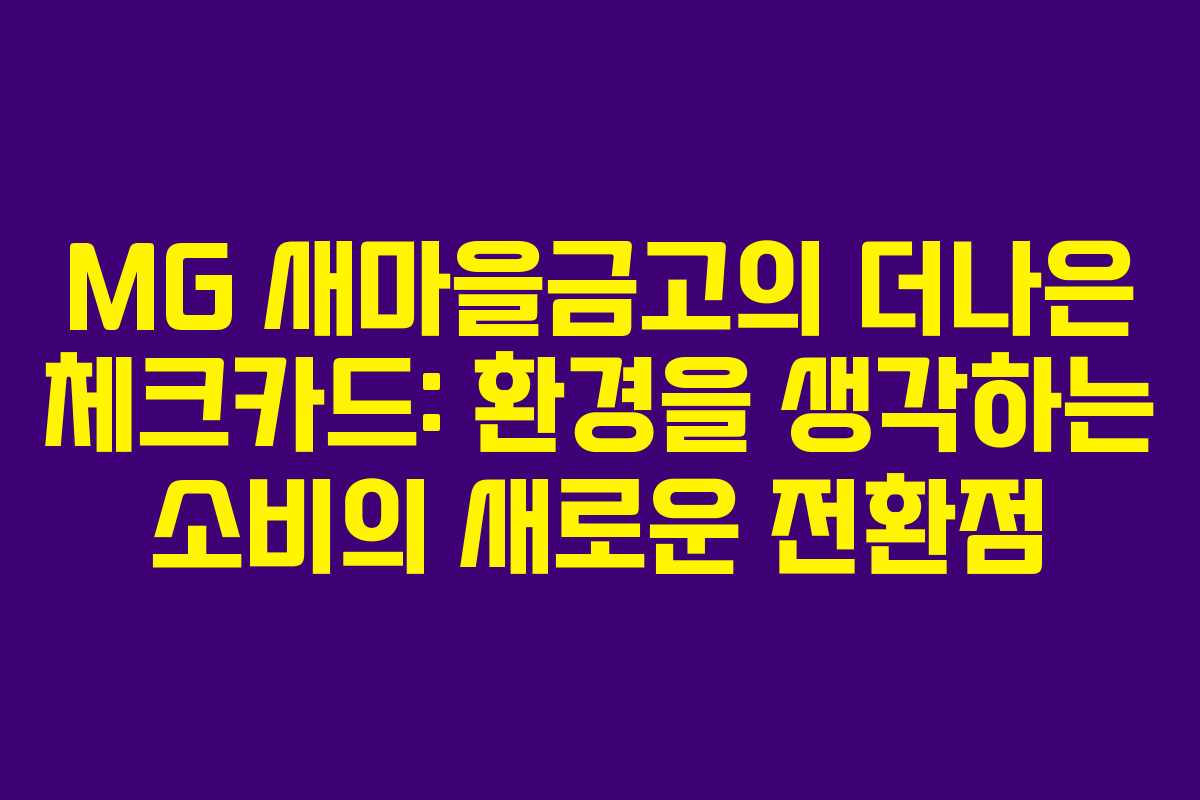 MG 새마을금고의 더나은 체크카드: 환경을 생각하는 소비의 새로운 전환점